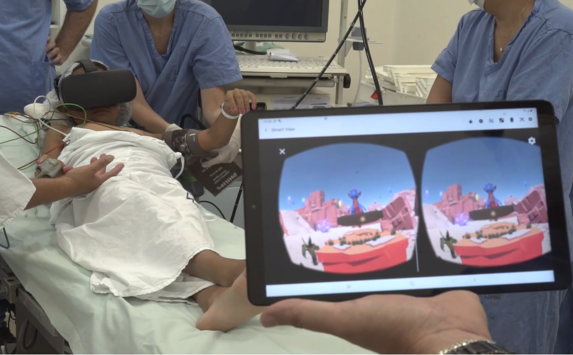 Ao entrar na sala, as crianças colocam os óculos para viver por alguns minutos mundo criado especialmente para elas: um dragão, ou Dragãozinho, como já é carinhosamente chamado, conta uma história que percorre todos os passos do procedimento até a sedação. As crianças ficam imersas e interagem sensorialmente com o personagem, criado exclusivamente para elas.