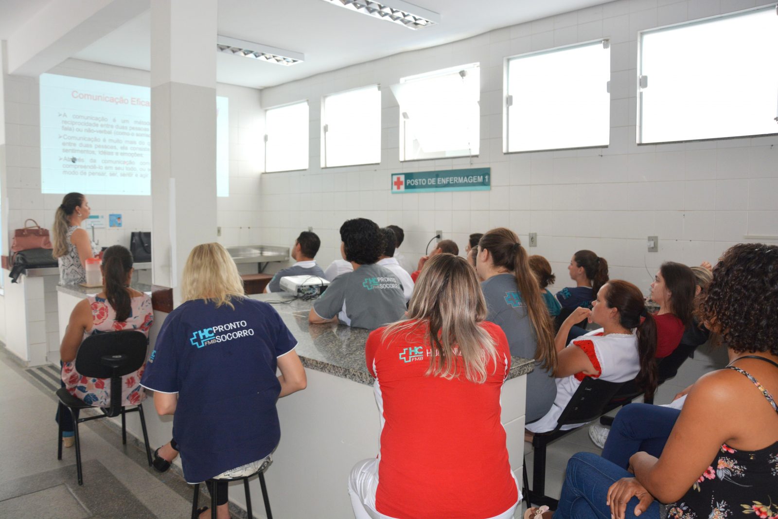 Na manhã desta quarta-feira, 19, o Pronto-Socorro Adulto (PSA) do Hospital das Clínicas da Faculdade de Medicina de Botucatu (HCFMB) recebeu um treinamento sobre Estratégias de Comunicação Eficaz e Humanização no Atendimento em Pronto-Socorro, realizado em parceria com a Gerência de Enfermagem, Núcleo de Serviço Social e Núcleo de Capacitação, Treinamento e Desenvolvimento (NUCADE) do Departamento de Gestão de Pessoas (DGP) do HCFMB.