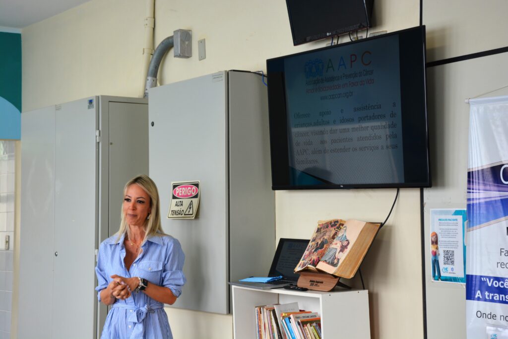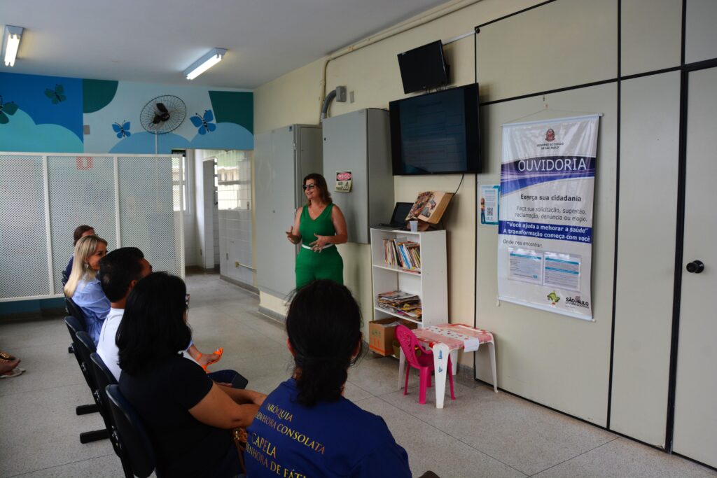 Na quinta-feira, 21, o Serviço Técnico de Radioterapia do Hospital das Clínicas da Faculdade de Medicina de Botucatu – Unesp (HCFMB) recebeu a assistente social Fabiana Cristina Reche e a psicóloga Carla Simões, da Associação de Assistência e Prevenção ao Câncer (APPC) para um bate-papo com pacientes sobre o câncer, com foco no câncer de próstata, em virtude do movimento Novembro Azul, e a importância do acompanhamento multidisciplinar.