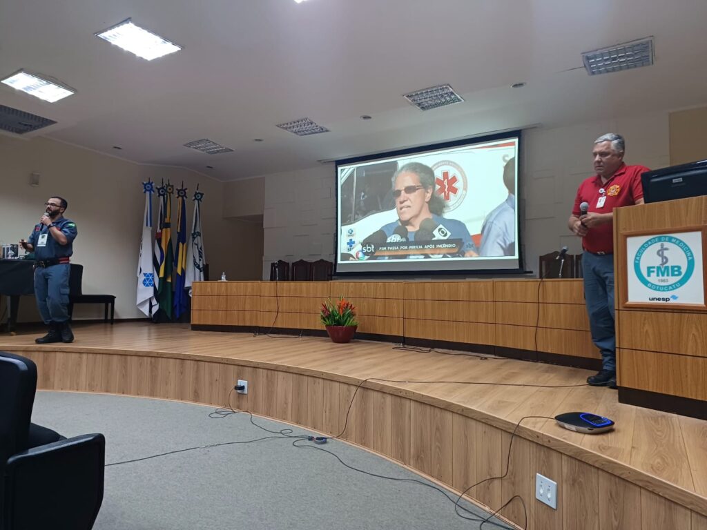 Compondo a mesa de abertura na terça-feira, 17, estiveram presentes o Diretor da FMB | Unesp e presidente do Grupo Administrativo do Campus, Carlos Magno Castelo Branco Fortaleza; o Superintendente do HCFMB, José Carlos Souza Trindade Filho; o vice-presidente da Famesp, Trajano Sardemberg; o Vice-Diretor da FMVZ, Mário De Beni Arrigoni; o Vice-Diretor do IBB, William Fernando Zambuzzi; o coordenador executivo do IBTEC, Paulo Eduardo Martins Ribolla, e a coordenadora do SESMT HCFMB / Famesp, Enf.ª Dra Camila Polo Camargo da Silva.