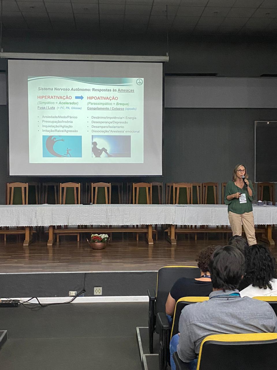 Abrindo a programação de palestras, a importância dos pets para a vida das pessoas e os serviços oferecidos pelo Hospital Veterinário da FMVZ foram os temas abordados pela docente da instituição Dr.ª Luciane dos Reis Mesquita. Na sequência, a médica psiquiatra e professora da FMB | Unesp Dr.ª Albina Rodrigues Torres abordou o tema “Exaustão e Síndrome de Burnout”.
