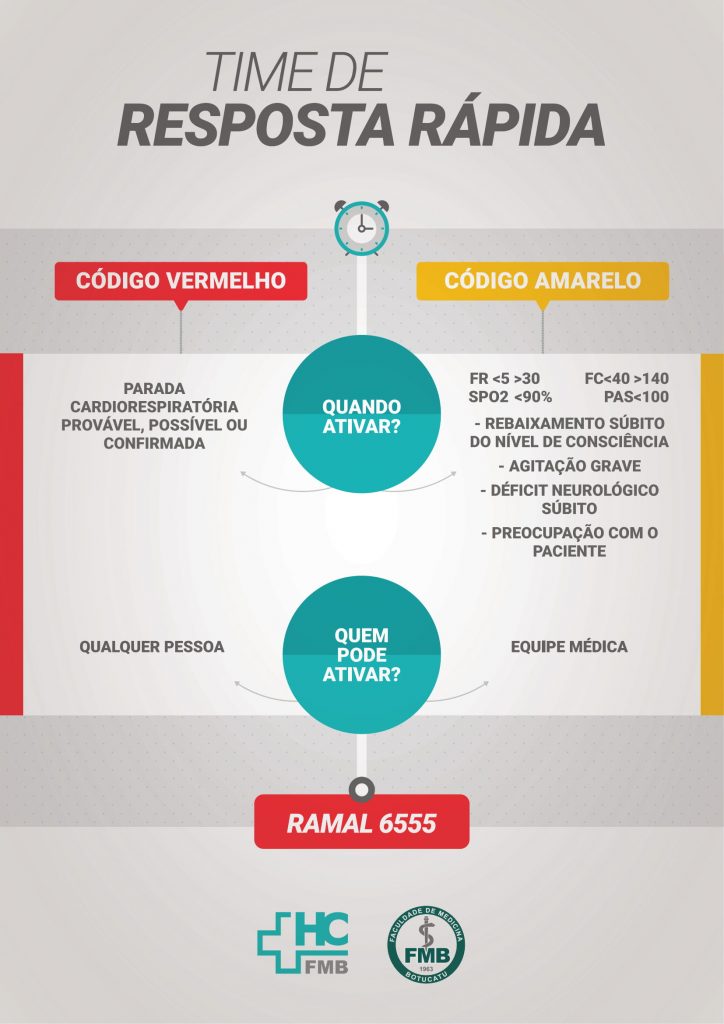 O TRR pode ser acionado também pelo Código Amarelo, que visa prevenir Códigos Vermelhos, via critérios disponibilizados no HCFMB pela equipe médica. O time oferece suporte à equipe responsável pelo paciente.