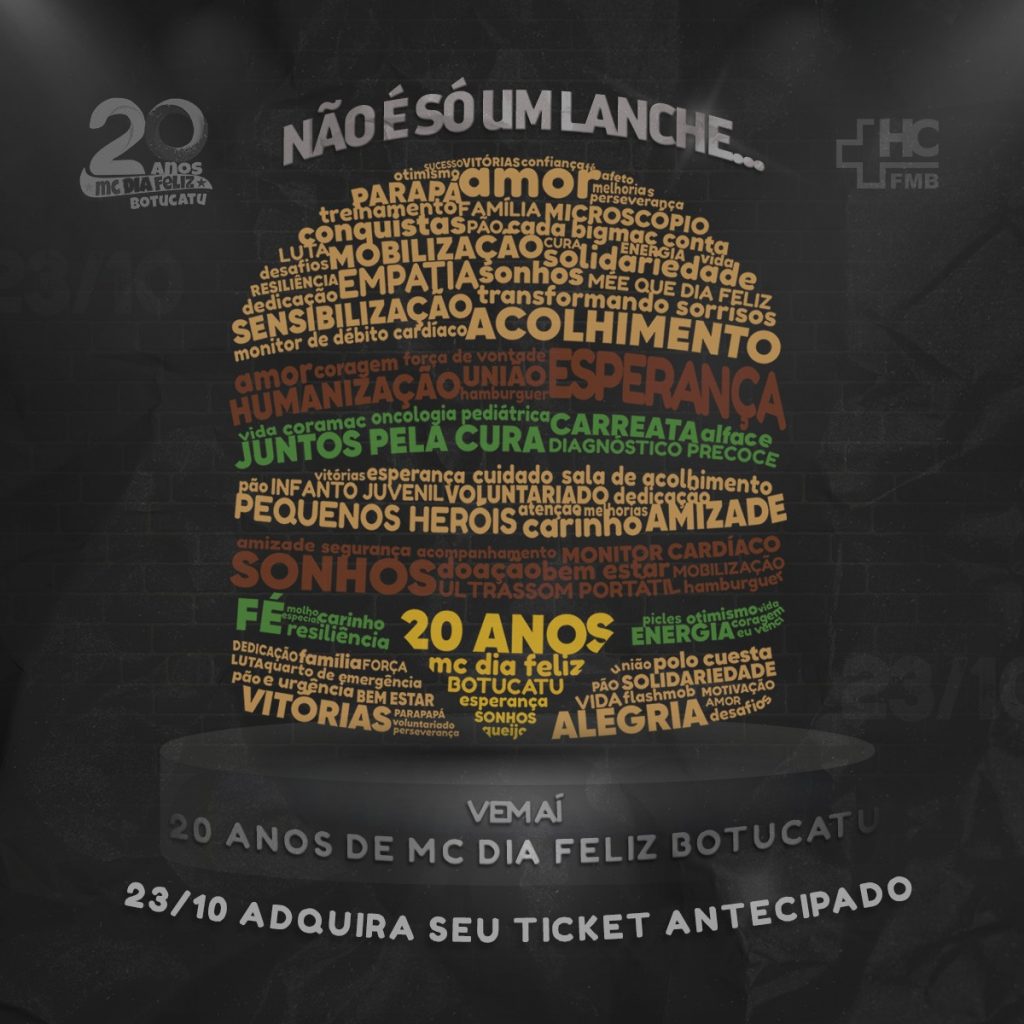 Há 20 anos, todo segundo semestre em Botucatu tem sabor de solidariedade, e a cidade descobriu que um lanche não somente pode alimentar o corpo, mas também a esperança de muitas vidas. Neste ano de 2021, por conta da pandemia, o McDia Feliz, tradicionalmente realizado em agosto, será no dia 23 de outubro.