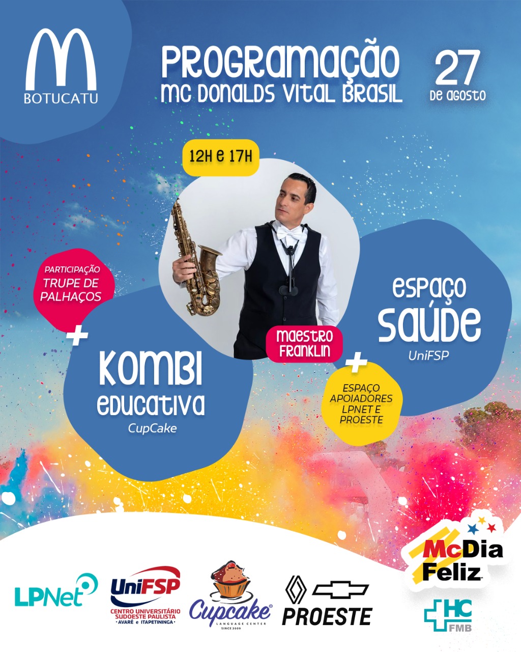 Neste ano, o mês de agosto tem sabor de solidariedade: coordenada nacionalmente pelo Instituto Ronald McDonald e, em Botucatu, pelo Hospital das Clínicas da Faculdade de Medicina de Botucatu (HCFMB) em parceria com a Fundação para o Desenvolvimento Médico e Hospitalar (Famesp), a campanha do McDia Feliz 2022 será realizada no próximo sábado, 27 de agosto.